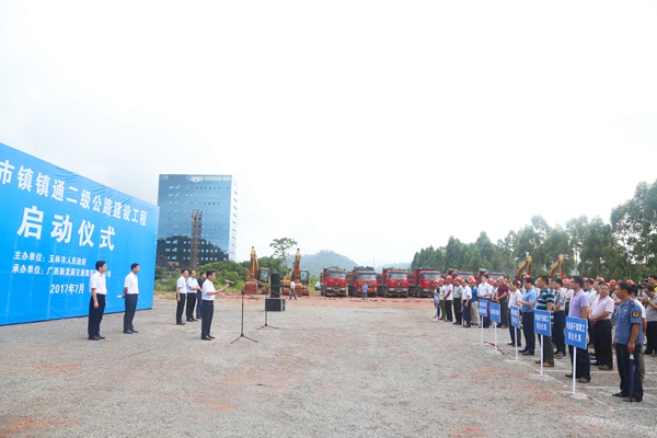 玉林市交通運輸局局長何東真主持儀式。玉林市市交運局、發改委、住建委、國土局、林業局等相關部門負責人,各縣(市、區)政府分管交通工作有關部門負責人、興業縣干群代表以及新發展集團下屬企業代表參加了啟動儀式。(陳福喜 文/圖)