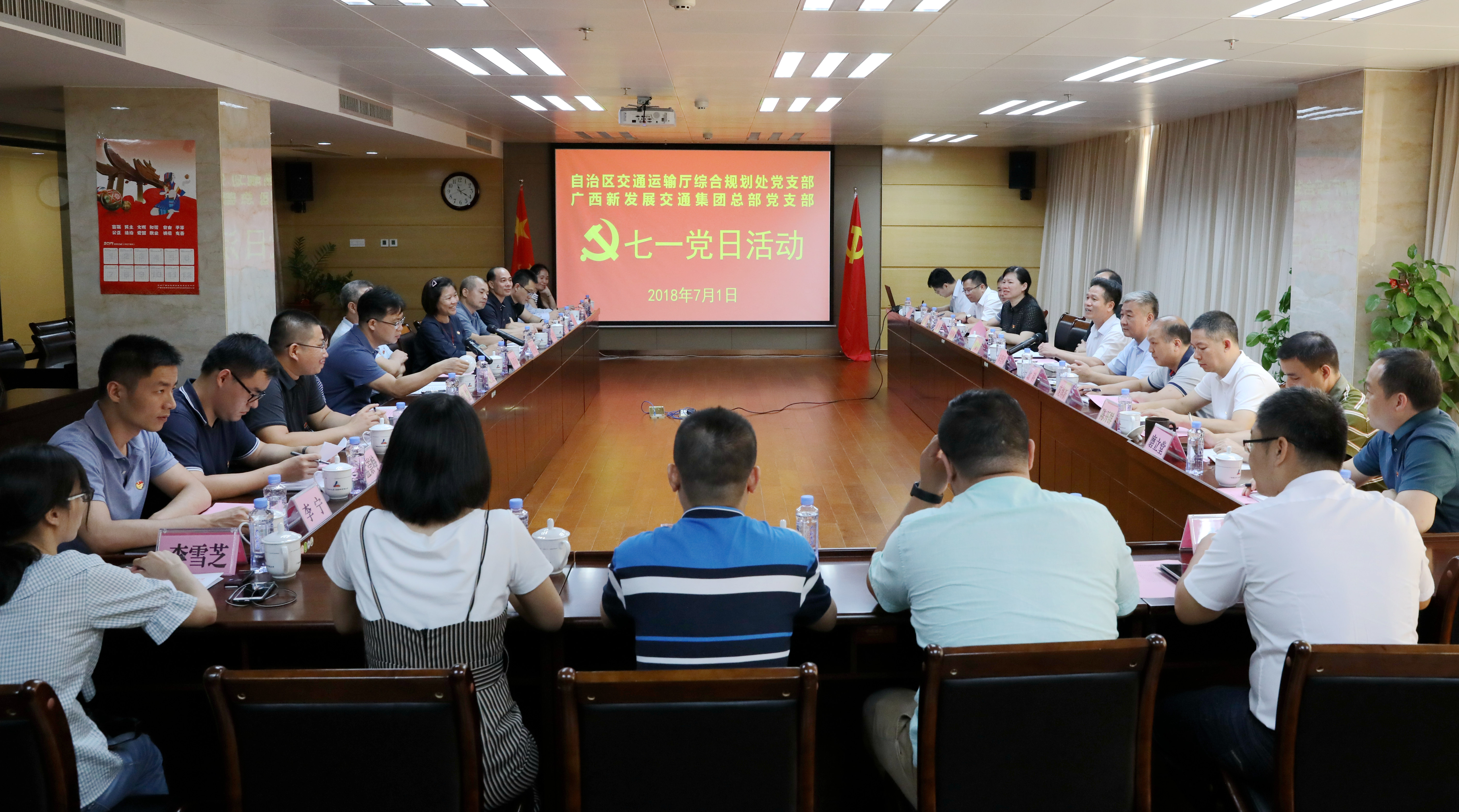雙方黨員通過交流發(fā)言,共同回顧了中國共產(chǎn)黨成立97年來艱苦卓絕的奮斗歷史和團(tuán)結(jié)帶領(lǐng)全國各族人民所取得舉世矚目的發(fā)展成就;共同感受到了我們比歷史上任何時期都更接近中華民族偉大復(fù)興的目標(biāo);共同認(rèn)識到,廣西交通人作為習(xí)近平總書記對廣西發(fā)展提出“三大定位”目標(biāo)的堅(jiān)定實(shí)踐者和開拓者,作為先行官,必須進(jìn)一步強(qiáng)化責(zé)任感和使命感。活動中,雙方黨組織重點(diǎn)就縣縣通高速公路、路網(wǎng)項(xiàng)目、智慧交通項(xiàng)目等有關(guān)事項(xiàng)進(jìn)行了深入探討。
